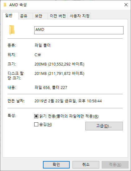 윈도우 기본 탐색기의 용량 확인은 직관적이지 않습니다. 이처럼 폴더의 속성에 들어가 직접 확인해야 하죠.