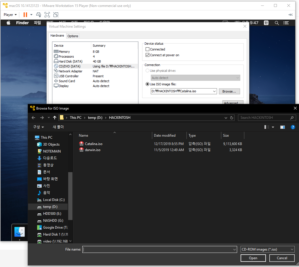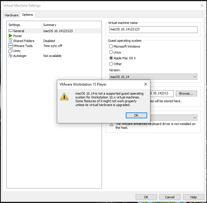 설치가 다 되면 다시 Edit virtual machine settings에 들어가 OS를 macOS 10.14로 바꾼다.