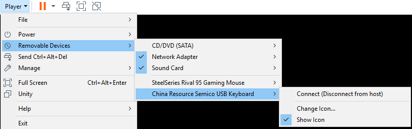 Removable Devices -> Keyboard 이름 -> Connect를 눌러 키보드를 연결해주자.