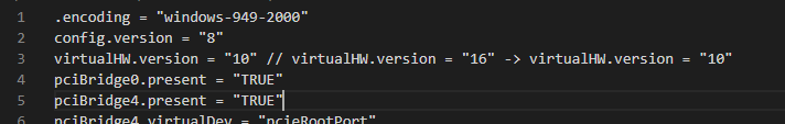 virtualHW.version = "16"을 virtualHW.version = "10"으로 변경해준다.