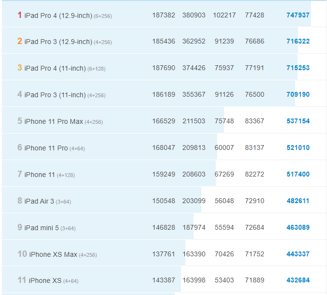 A13 바이오닉 칩을 탑재한 두 번째 아이폰, 아이폰 SE 2세대의 안투투 점수가 공개되었다. 중국 기기들의 점수 뻥튀기 논란으로 완전히 신뢰할 순 없는 지표이지만, 이 성능대로라면 iPhone 11에 비해 조금 떨어지는 성능을 가지고 있다. 하지만 가격이 가격이니만큼 이 정도면 같은 가격대에서는 따라올 수 없는 성능이라고 생각한다.