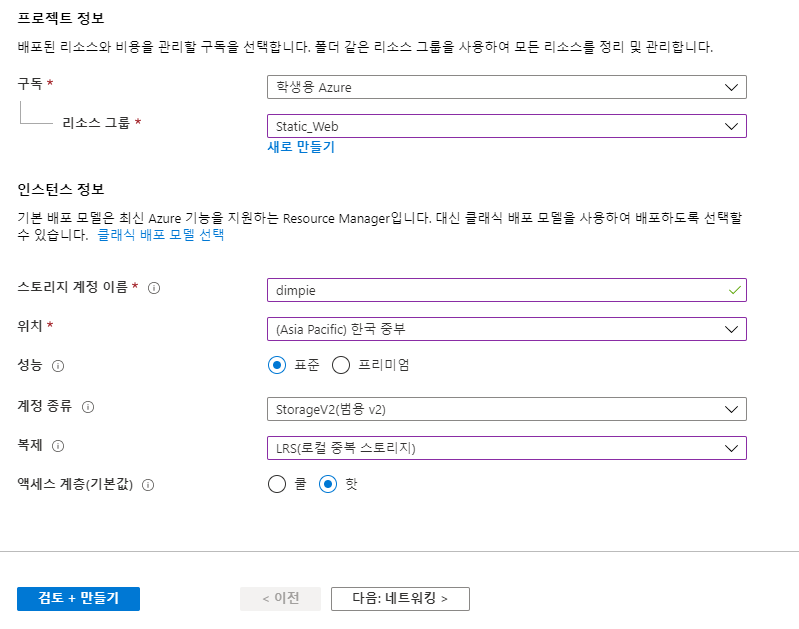 스토리지 계정의 정적 웹사이트 기능을 이용하여 저렴한 가격으로 웹사이트를 제작할 수 있다.