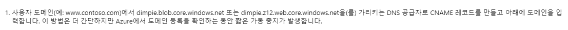 애저 정적 웹사이트 서비스에선 사용자 지정 도메인을 연결 할 수 있다.