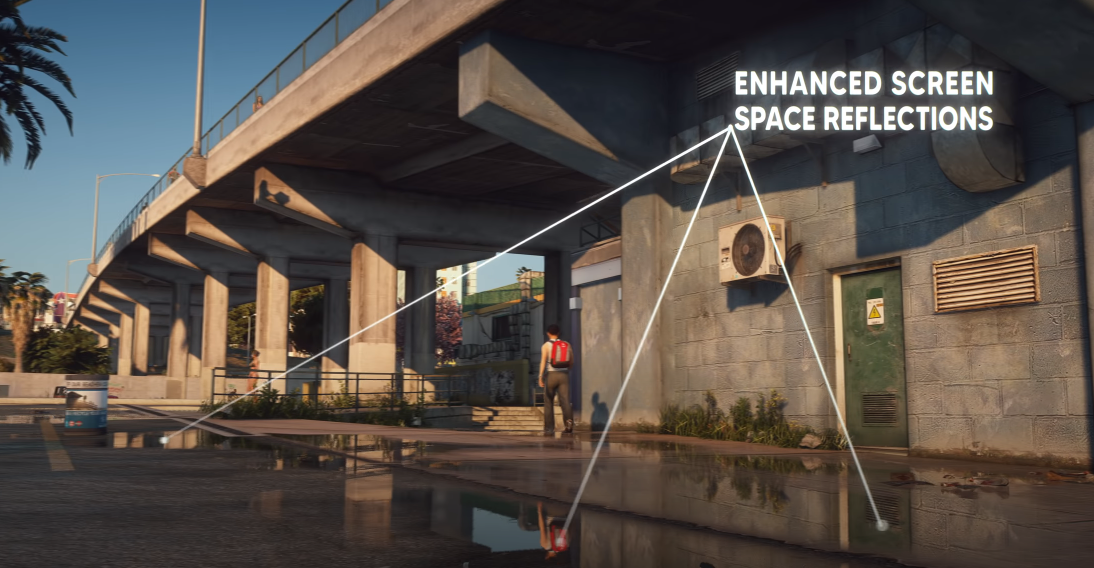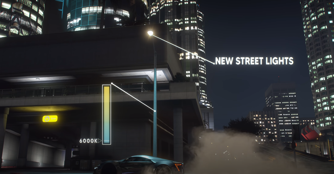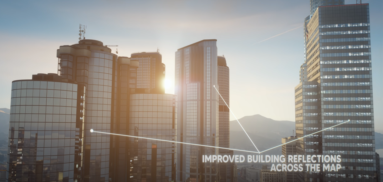 레이트레이싱적인 효과, 자연스러운 반사, 건물 반사 개선, 네온 라이트, 새로운 가로등, 더 현실적인 길 텍스쳐 등 GTA 5 그래픽의 많은 것이 개선, 추가되었다.