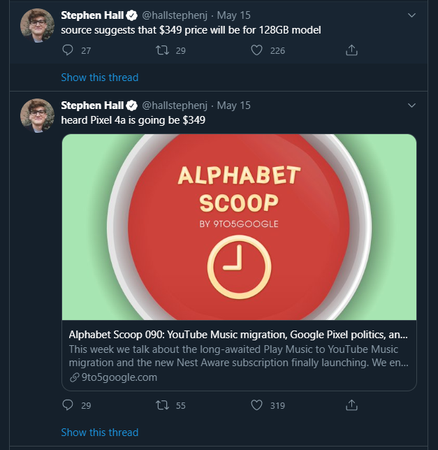 구글 픽셀 4a의 128G 모델이 349달러일 수 있다는 소식입니다. 9to5Google의 Stephen Hall은 자신의 트윗에서 구글 픽셀 4a의 128G 모델이 349달러라고 말했습니다. 이게 사실이라면 아이폰 SE 2020과도 경쟁을 해볼만한 가격이라고 생각됩니다.