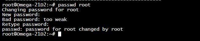 오메가2의 기본 패스워드는 root/onioneer으로 모두 동일하지만, 셋업 과정에서 변경되지 않는다. 한번 패스워드를 변경해보자.