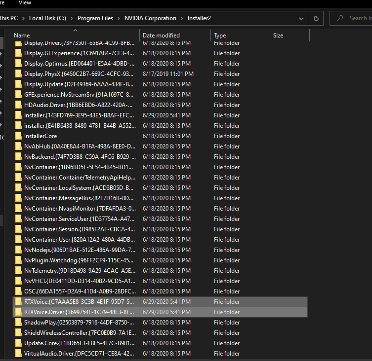 Installer2 폴더에 있는 RTXVoice 관련 폴더도 지워준다.