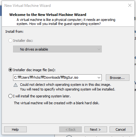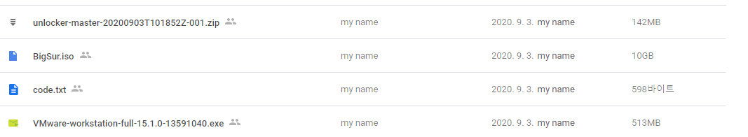 구성품으론 Unlocker, BigSur 이미지 파일, 텍스트 파일, VMware Workstation이 있다. 나는 VMware Workstation Player 15.1을 사용했다.