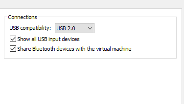 VM 설정에 들어가서 USB 버전을 USB 2.0을 변경한다.