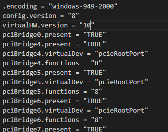 VM을 생성한 후, 해당 VM의 폴더에 들어가 vmx를 텍스트 에디터로 실행한다.