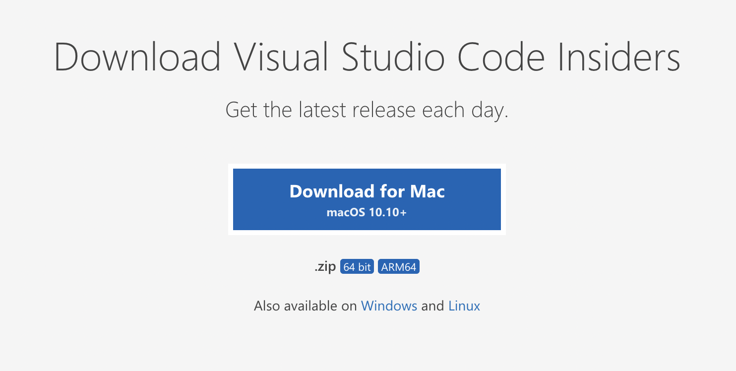 먼저 VSCODE Insider Preview(ARM64)를 설치한다. 로제타를 통해 일반 맥버전을 사용해도 상관없다.