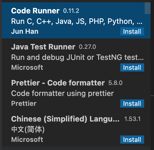 VSCODE를 실행하고, C/C++, Code Runner 확장프로그램을 찾아 설치해준다.
