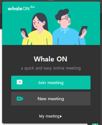 '웨일 온'은 국내 최대 포털 사이트 네이버에서 공개한 화상 회의 서비스이다. 자사 웹브라우저인 '웨일'의 이름을 따와 이름을 지었다.