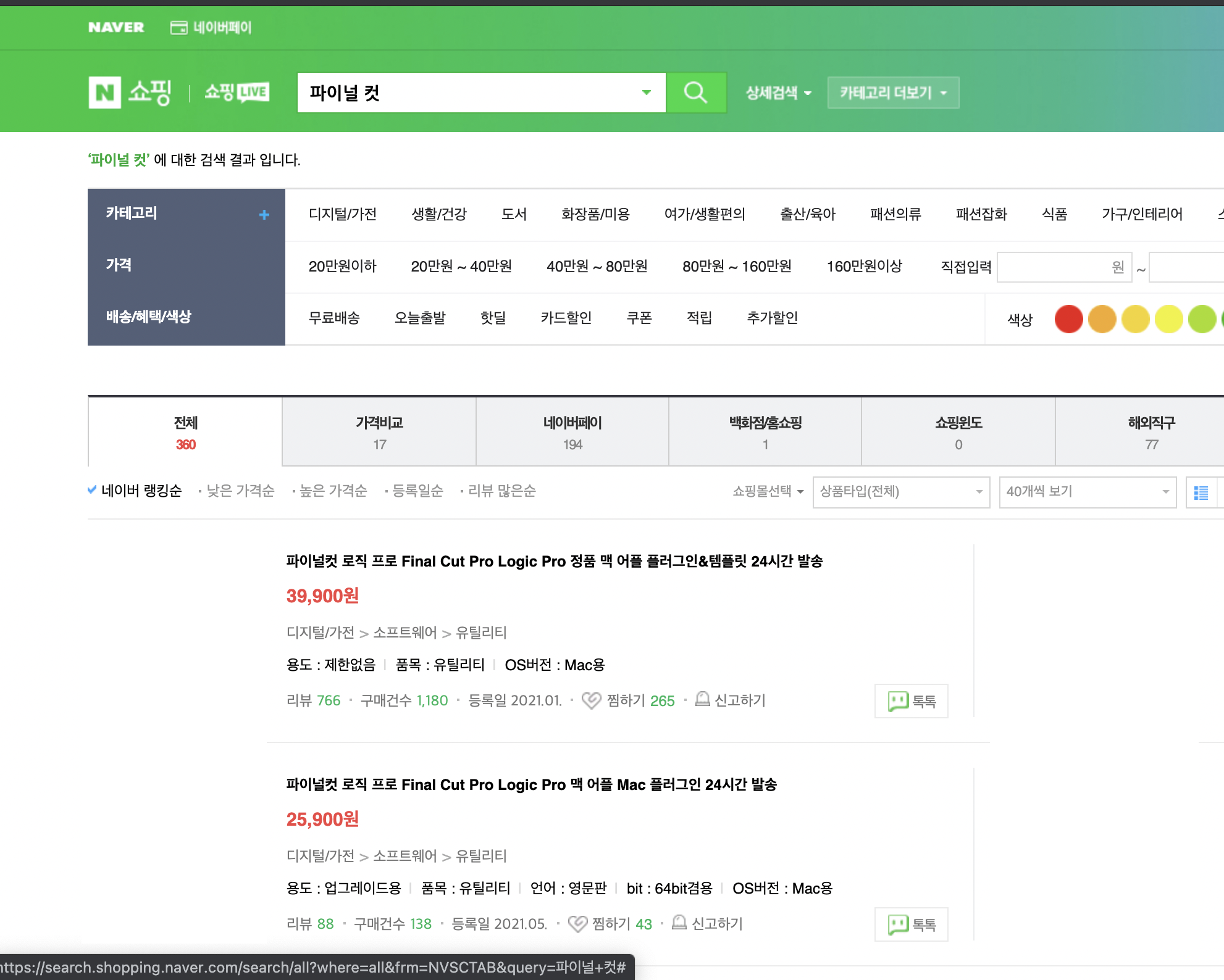 네이버 쇼핑이나 옥션같은 오픈마켓을 돌다보면 저가에 판매중인 파이널컷과 로직 프로가 많이 보입니다.