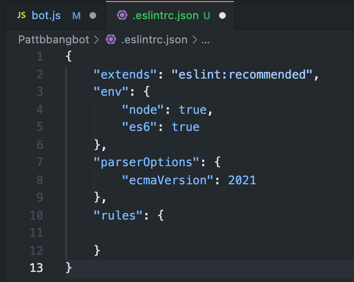프로젝트 폴더에 .eslintrc.json를 생성하고, 위의 코드를 붙여넣습니다.