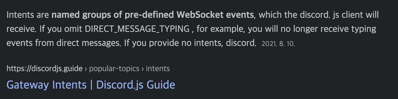 | 4. DiscordJS client.on 이벤트 정리 (0) | 2022.02.23 |