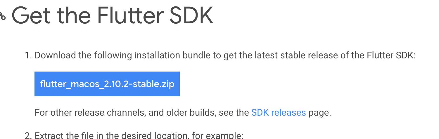 Flutter 설치 파일을 다운로드한다.